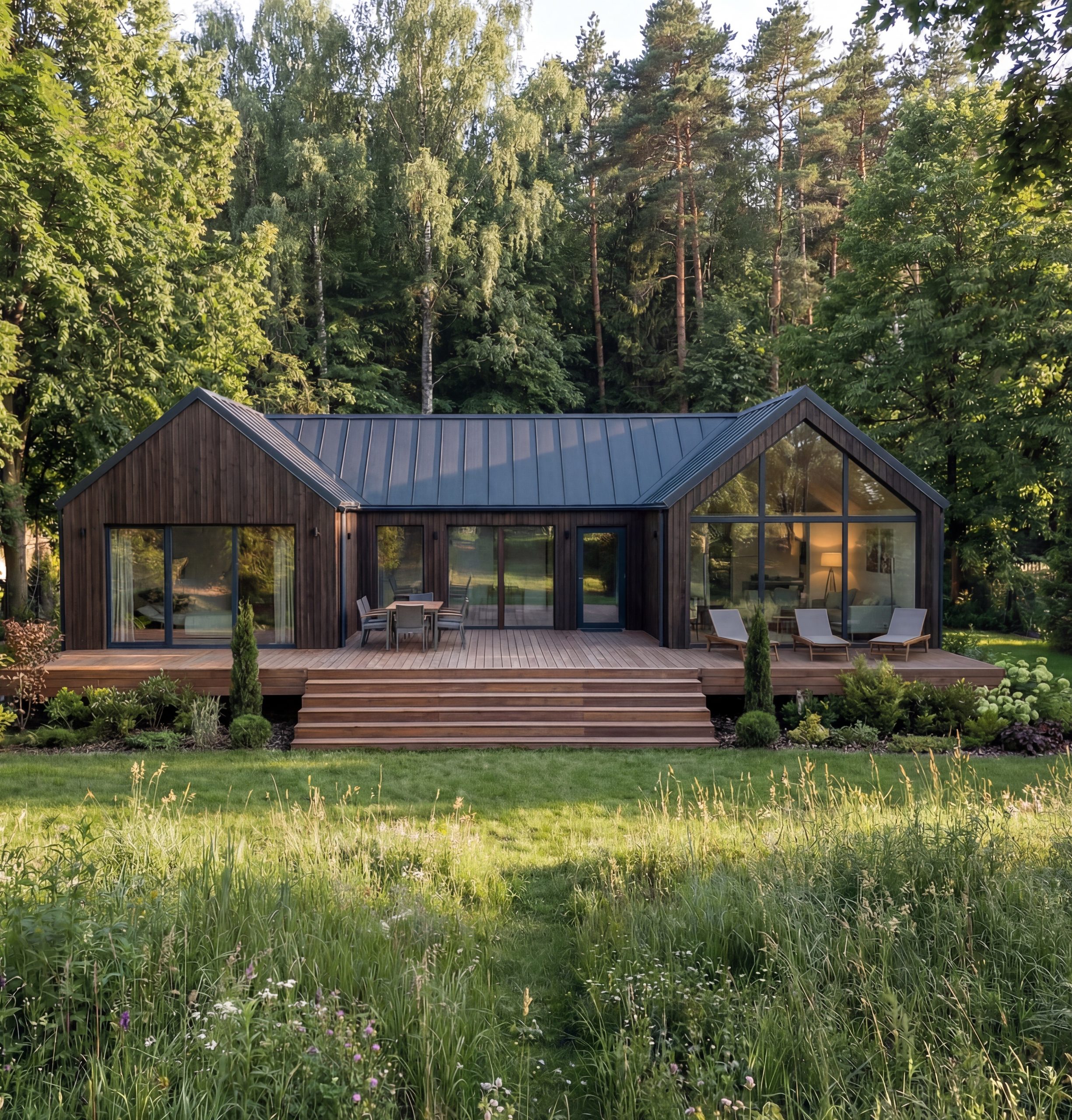 Domki modułowe składa się jak puzzle — każdy moduł jest zaprojektowany, precyzyjnie wycinany na maszynach CNC, dzięki czemu wszystkie elementy idealnie do siebie pasują, a montaż na miejscu przebiega sprawnie oraz precyzyjnie.
